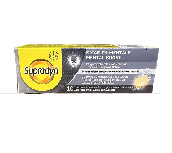 Supradyn Mental Boost é um suplemento alimentar com Cafeína e Guaraná para o desempenho mental e redução do cansaço e fadiga.