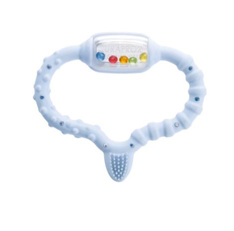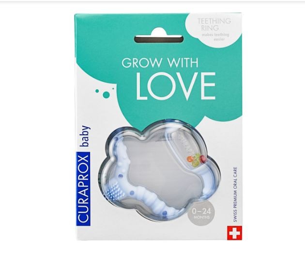 O mordedor Curaprox promove o desenvolvimento das capacidades sensoriais e motoras e estimula a escovagem dos dentes.