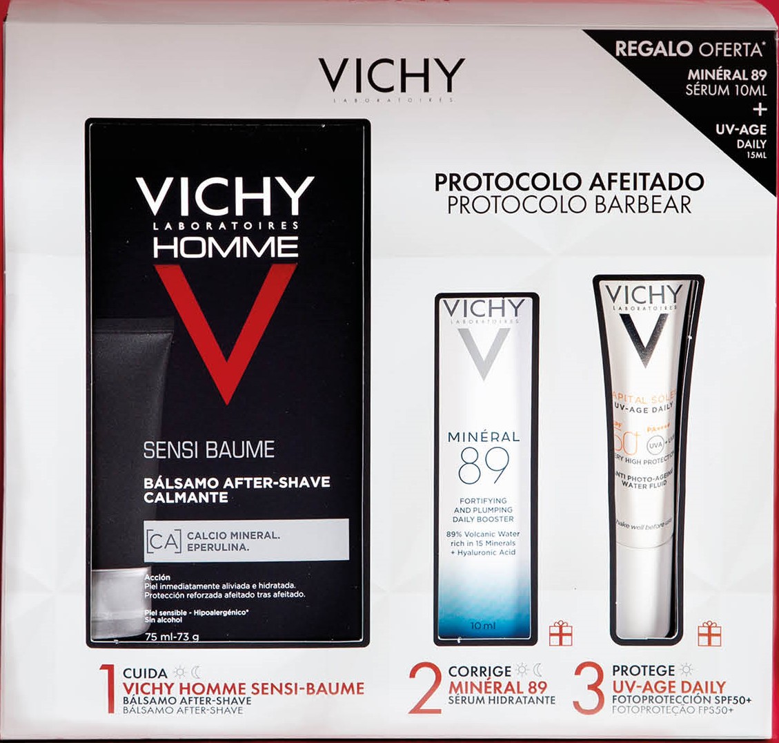 Conjuga o poder da Água Termal fortificante, rica em minerais, e o apaziguamento do Cálcio dermo-reparador que garante à pele sensível um apaziguamento imediato, enquanto fortifica a pele, barbear após barbear.