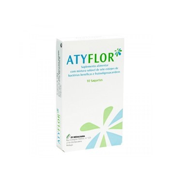 O Atyflor® é um suplemento alimentar que contém uma mistura solúvel de bactérias benéficas e fructooligossacarídeos, que restabelece a flora intestinal.