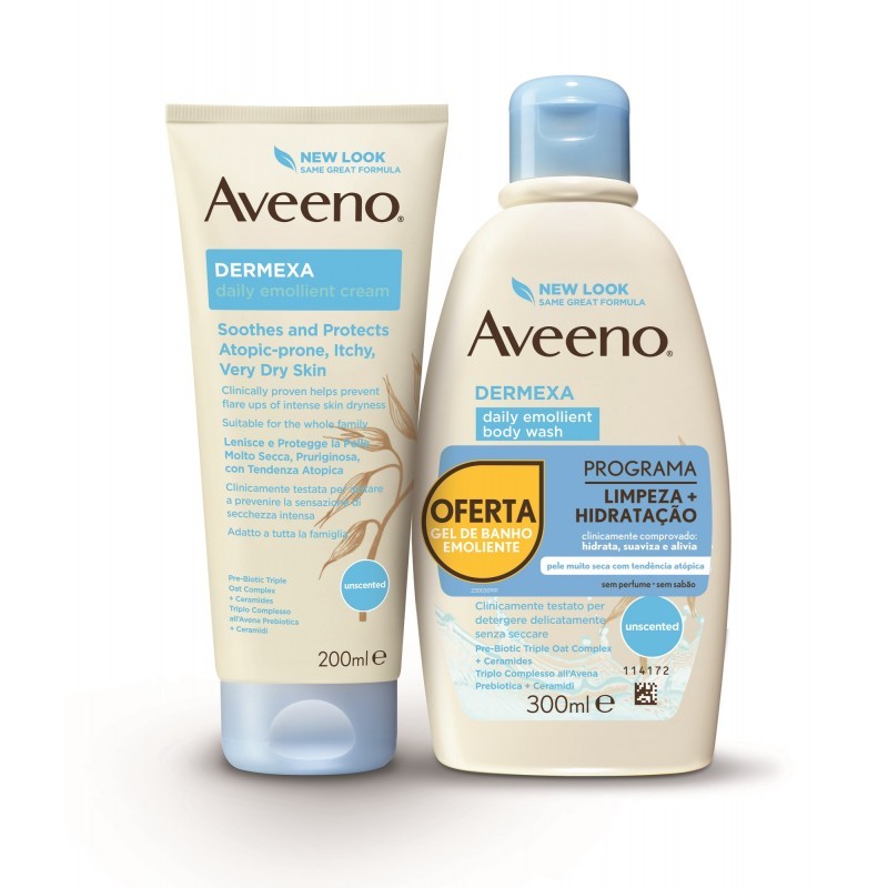 Aveeno Dermexa Creme Emoliente 200 ml com Oferta de Gel Banho Emoliente 300 ml