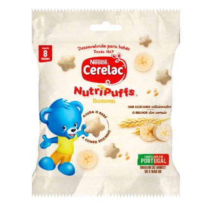 Porque os bebés têm necessidades diferentes de um adulto, CERELAC NutriPuffs Banana é um snack nutritivo à base de cereais com fruta, sem açúcares adicionados, que poderá ser oferecido ao bebé entre as refeições, especialmente desenvolvido a pensar nas necessidades específicas dos bebés a partir dos 8 meses de idade.