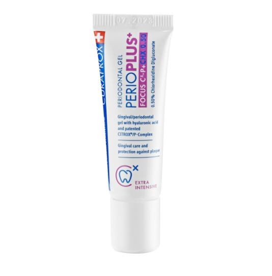 O Perio plus focus é um gel que forma uma pelicula protetora nos dentes e gengivas, controlando a placa bacteriana de forma natural e feicaz.