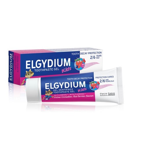 Elgydium Kids Gel dentífrico com 1000 ppm de ião flúor, preferencialmente recomendado para a prevenção da cárie dentária na dentição de leite.