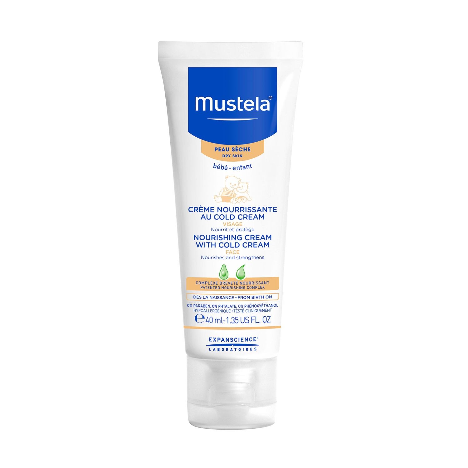 Creme de rosto nutritivo para bebés e crianças com cold cream para cuidado diário, desde o nascimento.