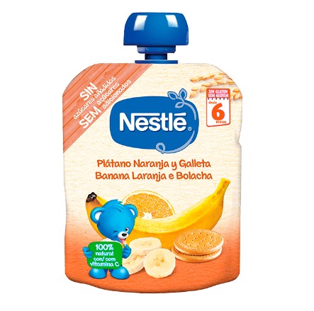 Com o compromisso de oferecer o melhor da natureza para o seu bebé, cada a Pacotinho de NESTLÉ Banana Laranja Bolacha, oferece todos os benefícios da fruta e da bolacha ao paladar exigente dos bebés e faz com que cada porção de fruta seja uma verdadeira delícia.