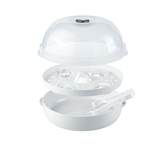 - Inclui pinças para uma remoção higiénica e segura dos biberões e acessórios após a sua esterilização;