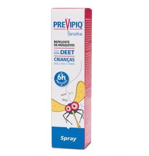 Previpiq® Sensitive repelente de mosquitos com 9.5% DEET, com apresentação em spray de fácil aplicação.