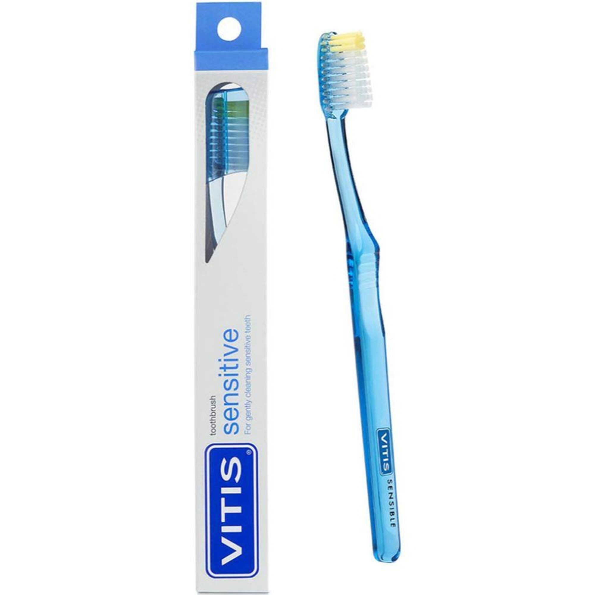 VITIS® Sensitive é uma escova de dentes com filamentos muito macios, sendo indicada para pessoas com sensibilidade dentária e gengivas sensíveis, pois permite uma escovagem diária sem causar dor.